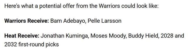 只不过,从实际操作角度来说,勇士媒体提供的这笔交易方案对于勇士队过于有利,哪怕热火队尝试重建,将阿德巴约摆上货架,也未必愿意接受这样的方案。