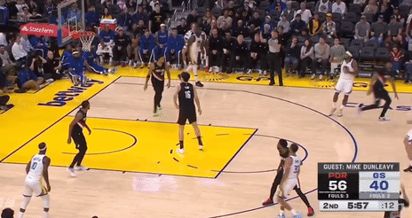 第二节勇士吉米-巴特勒拿下7分,开拓者谢登-夏普拿下13分,半场结束勇士57-73落后开拓者